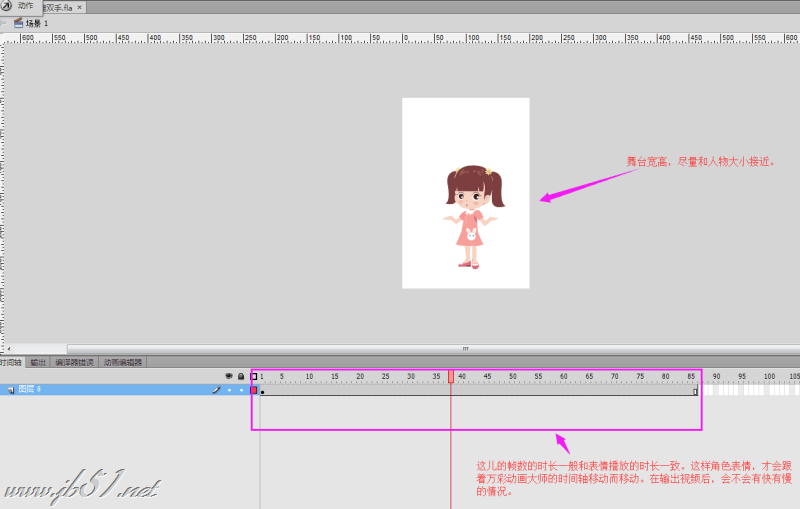 3. 根场景(项层场景或主场景)的帧数一定要和该角色的表情播放时长相一致。就是要做到,在根场景上,拖动时间轴的播放头到哪里,表情就会跟着播放到哪里。