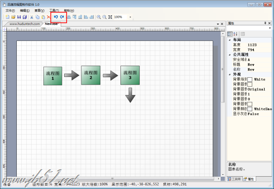 5、在绘制流程图过程中,若是操作后想要将其撤销,可以点击菜单栏上的“撤销上一次操作”按钮,将上一次的操作撤销。若是对撤销操作后反悔了,可以点击“重做”按钮。