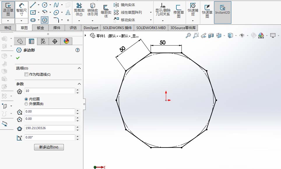 1、绘制草图,使用多边形命令,输入绘制十边形。