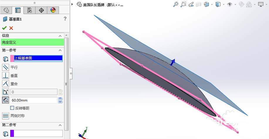4、在盾牌的顶端建立一个基准面。