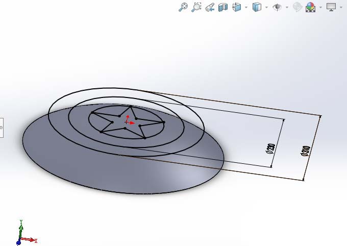 2、选择一个基准面,在面上画出如下草图,为后面盾牌的建模做准备。