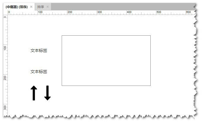 双击进入“中继器”内部,先清除原来内容;新建2个“文本标签”、1个“矩形”、1个“向上箭头”的图标、1个“向下箭头”的图标;如下图所示: