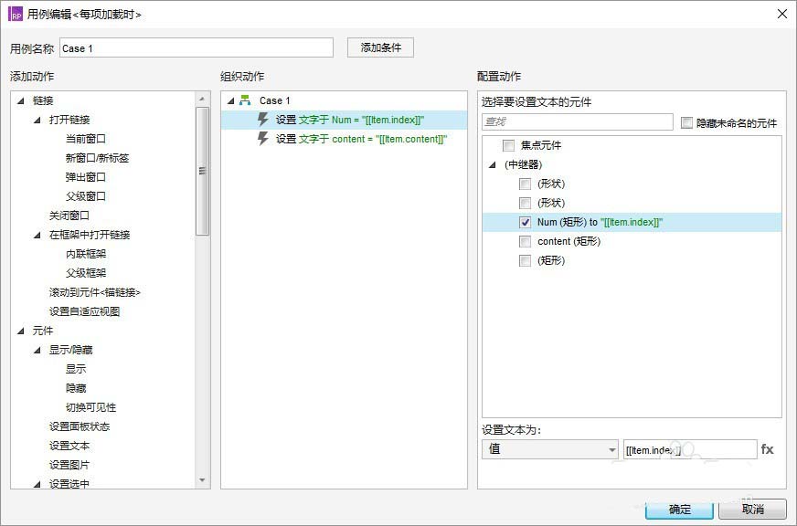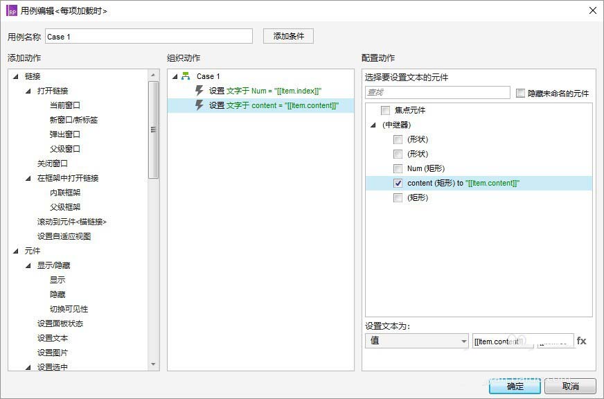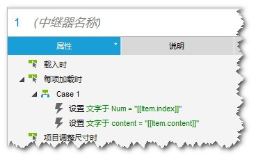 “中继器”设置2列:ID、content;可按所需设置行内容; (ID是用来排序的,建议按数字顺序设置),可参考下图设置: