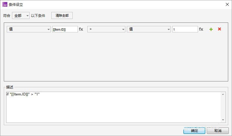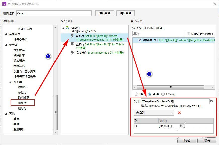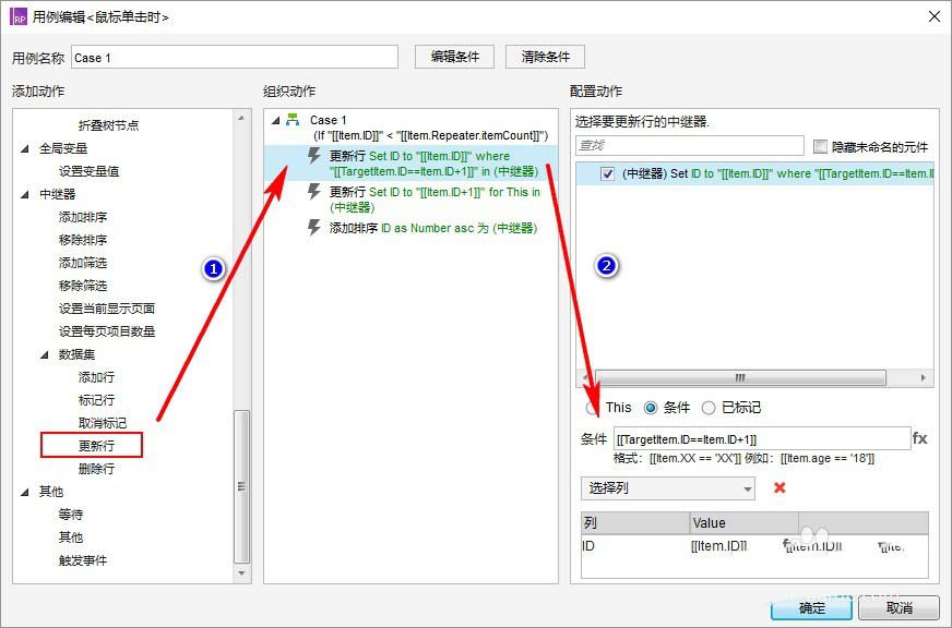 条件:当”值:[[Item.ID]]“大于1时,如下图所示:
