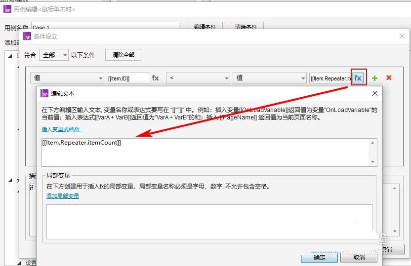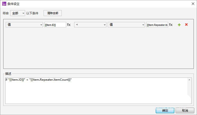 条件:当”值:[[Item.ID]]“小于”[[Item.Repeater.itemCount]]“时,如下图所示: