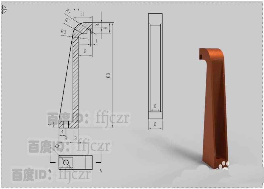 3、整个截面线的高度为60,这样钩状模型的截面线就完成了;用直线从底座顶角与钩状外圆弧相切连接,得到加强筋的截面线。