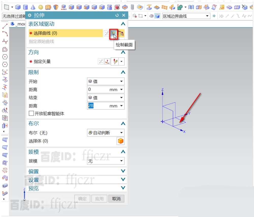 3、再次选用拉伸命令,以XZ面为草绘平面。进行如同平面铣刀的截面绘制。