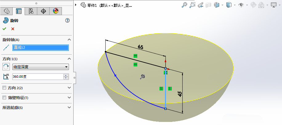 4、利用旋转凸台命令,对碗进行建模。