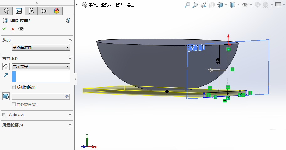 8、利用拉伸切除命令,对碗的底部进行切除改进。