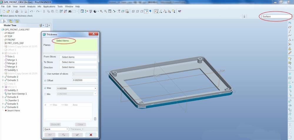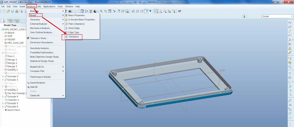 ProE设计好零件的3D图之后,需要检查图档是否做的有利于模具实际加工,在加工之前就需要做产品的肉厚分析,通过分析,可以发现容易出问题的地方,下面我们就来看看ProE做肉厚分析的教程。