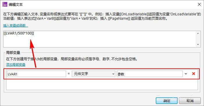 设置"文本框:参数"的内容(即数值)为局部变量LVAR1