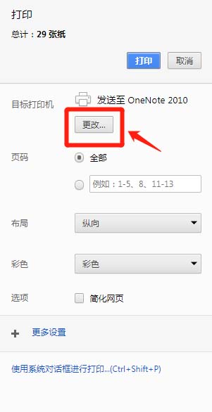6、这时候要调节打印机为pdf打印机,选择目标打印机下方的“更改”