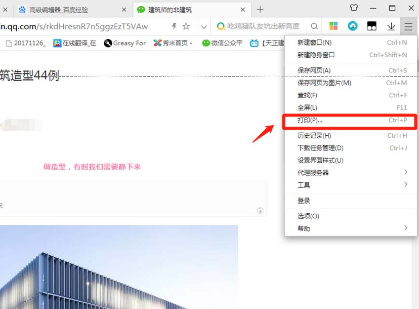 4、在浏览器窗口的右上角找到如图所示的菜单,点击“打印”