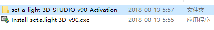 1、在本站下载并解压,得到Install set.a.light 3D_v90.exe安装程序和set-a-light_3D_STUDIO_v90-Activation破解文件夹