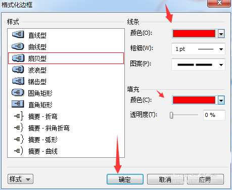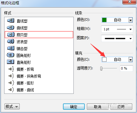 5、就会弹出了格式边框的当中,进行选中为扇贝性的选项。选中填充的自动部分。