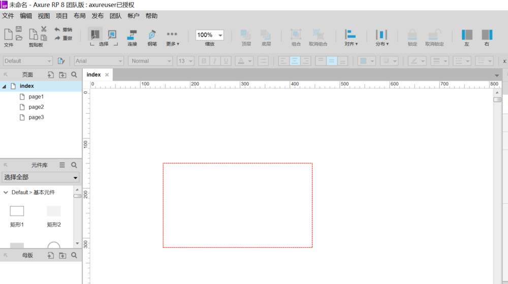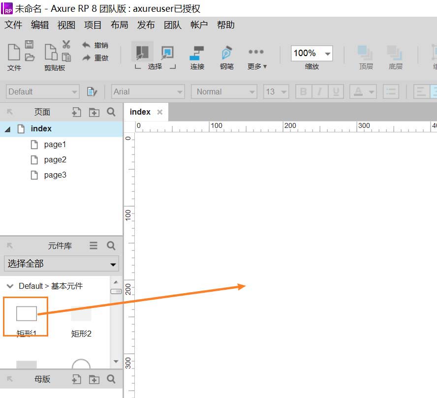 1、打开axure软件 ,在窗口左侧元件库中拖入带有边框的矩形到画板上
