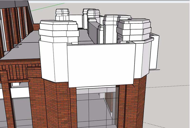 6、将屋顶外饰柱完成后,我们最好从各个角度进行观察,尽可能完善外饰柱的各个位置的样式,从而可以最大限度的提高整个模型的美观度。