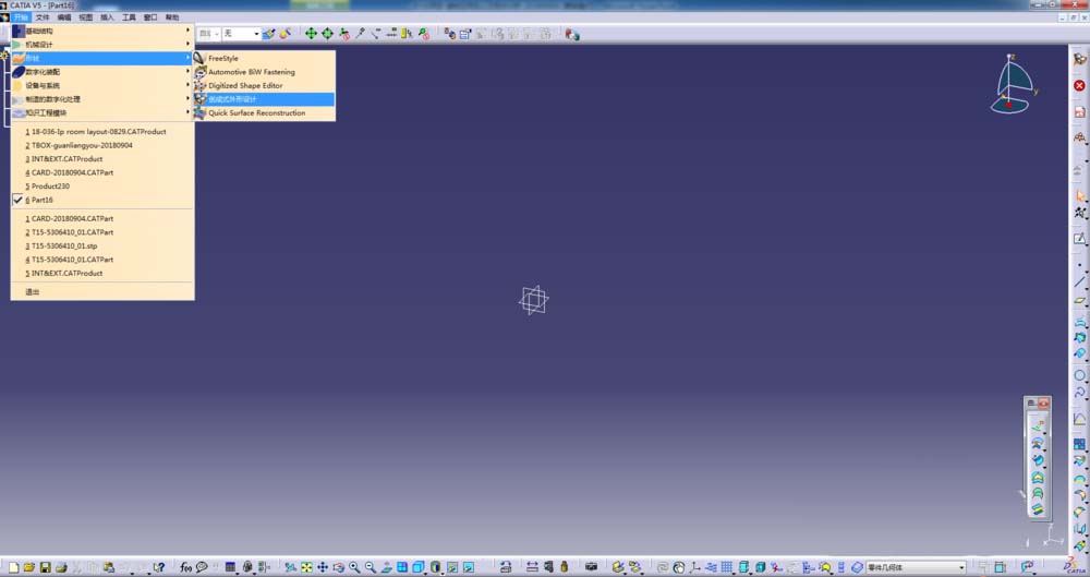 1、打开CATIA,在开始菜单中选择>形状>创成式外形设计;