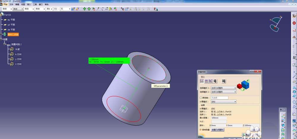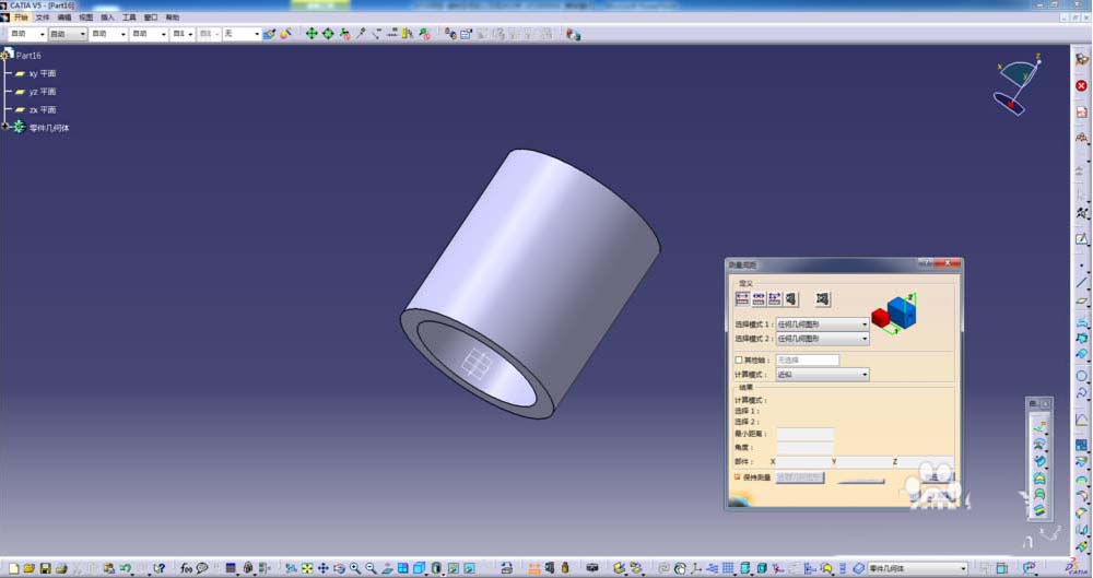 2、选取一个空心圆柱,选择测量命令;