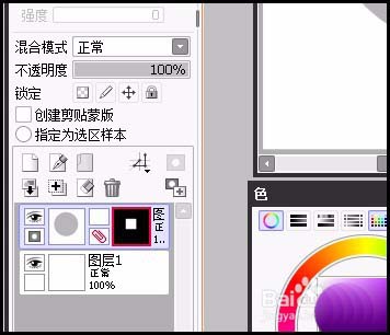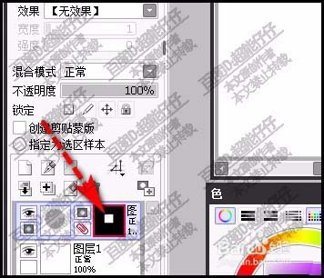 6、再看图层面板这里,图层上,有了蒙版的缩略图,中间白色部分就是画布中的矩形色块。