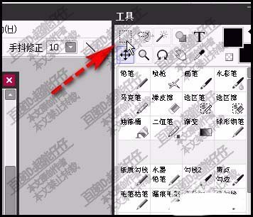 2、再在右上方这里,选取矩形选框工具,