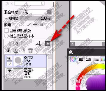 4、鼠标移到图层面板这里,如图所示,点击添加图层蒙版按钮。