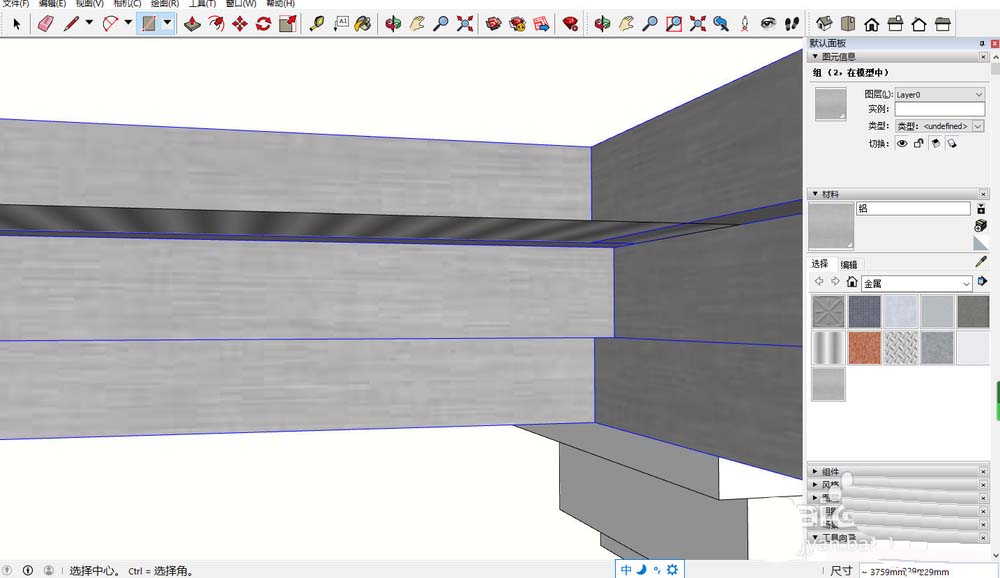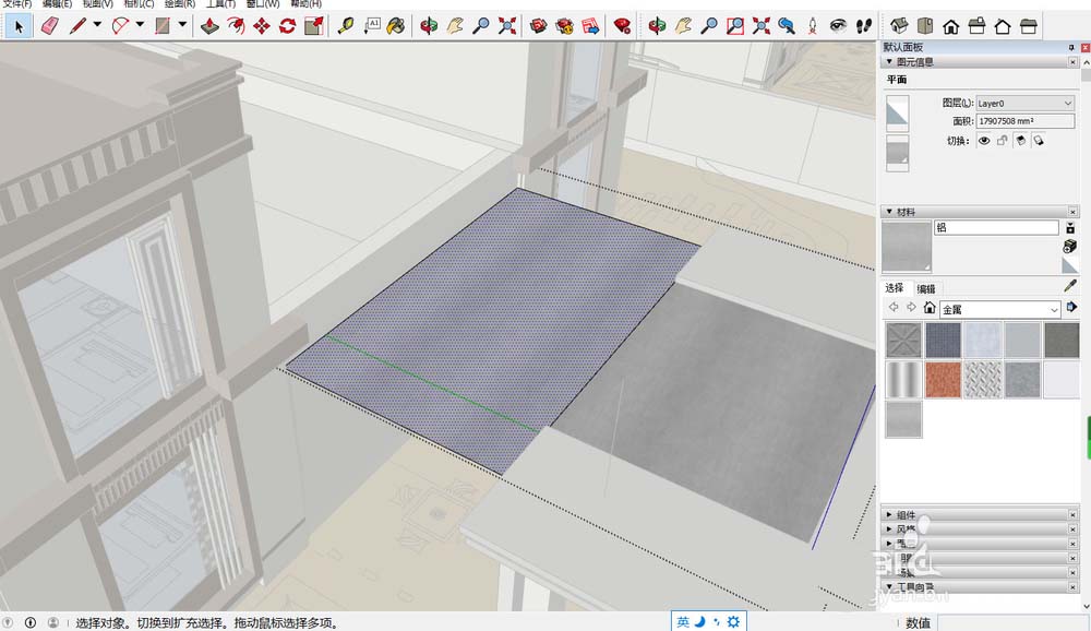 7、完成编组之后的体块,我们可以双击鼠标左键进入到组内编辑,此时周围模型会淡化,可以在组内编辑中,对矩形进行更加细致的调整和深化。