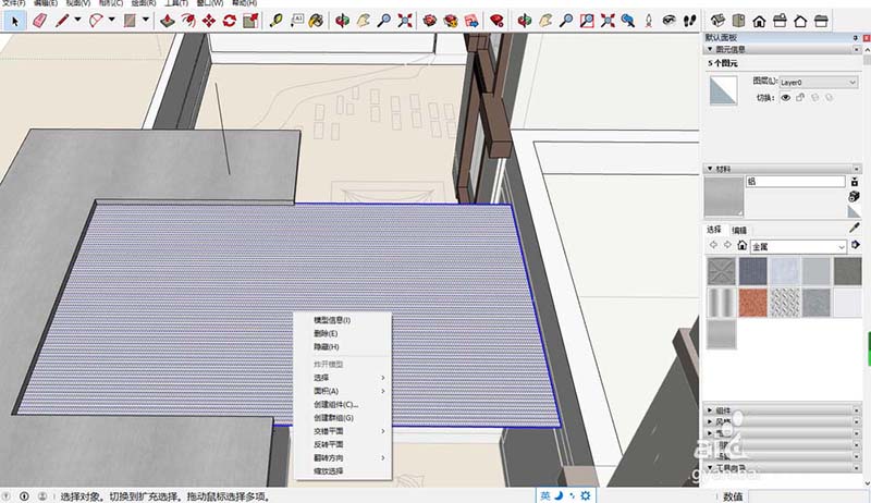 6、完成矩形的拉取后,我们最好全选矩形后,按下鼠标右键选择编组,对模型进行编组,可以帮助我们快速选择编辑矩形,并且不影响其他模型。