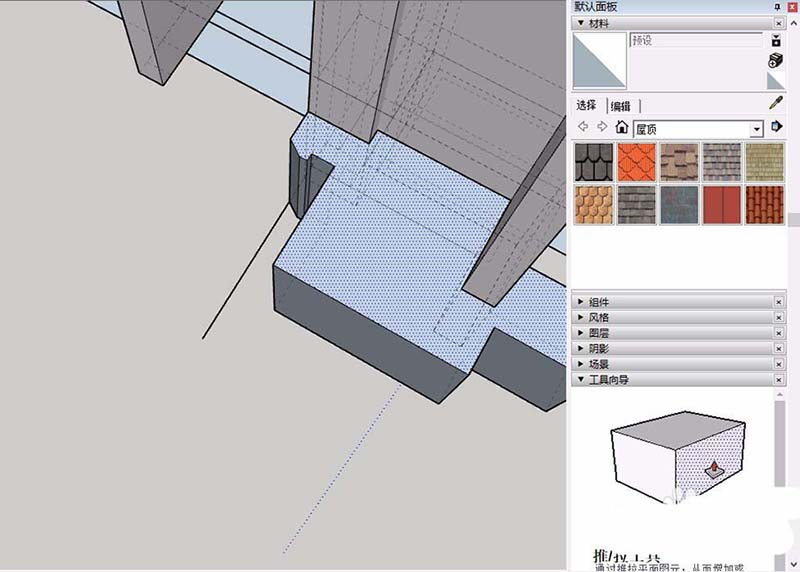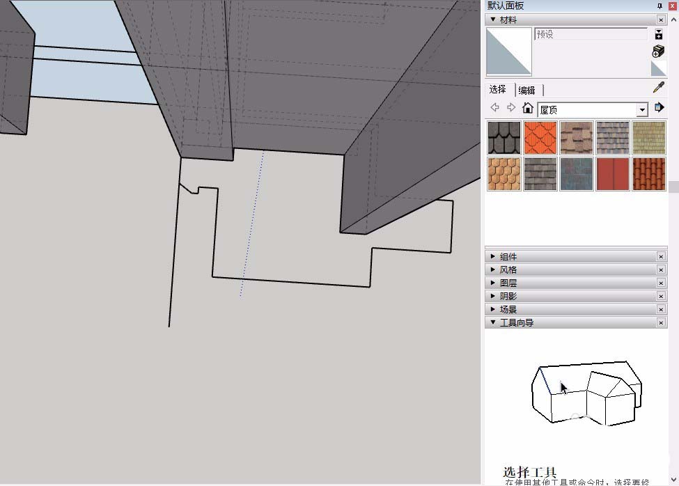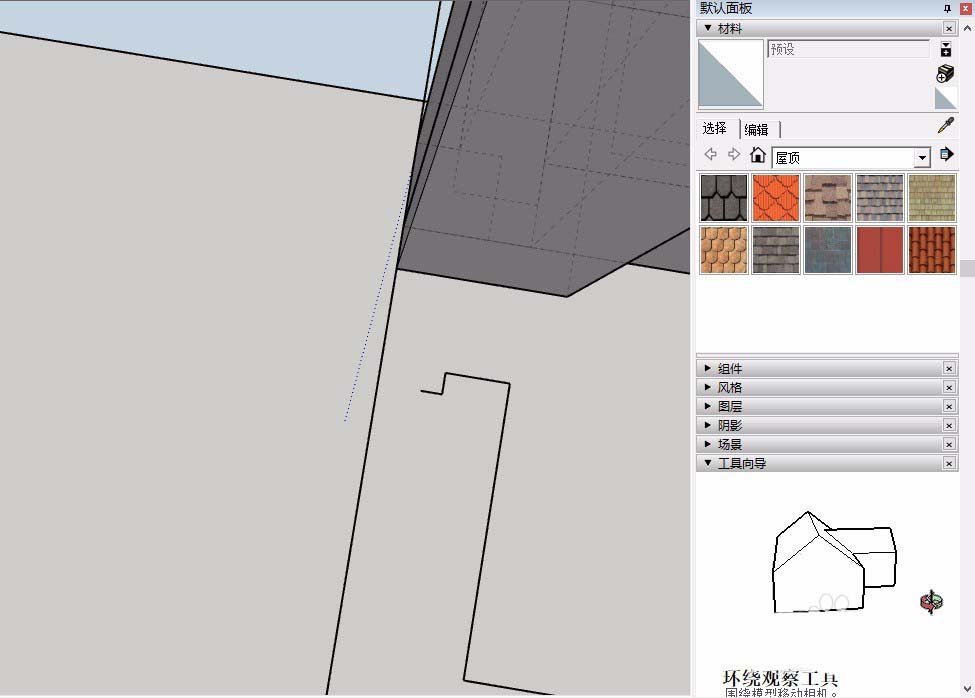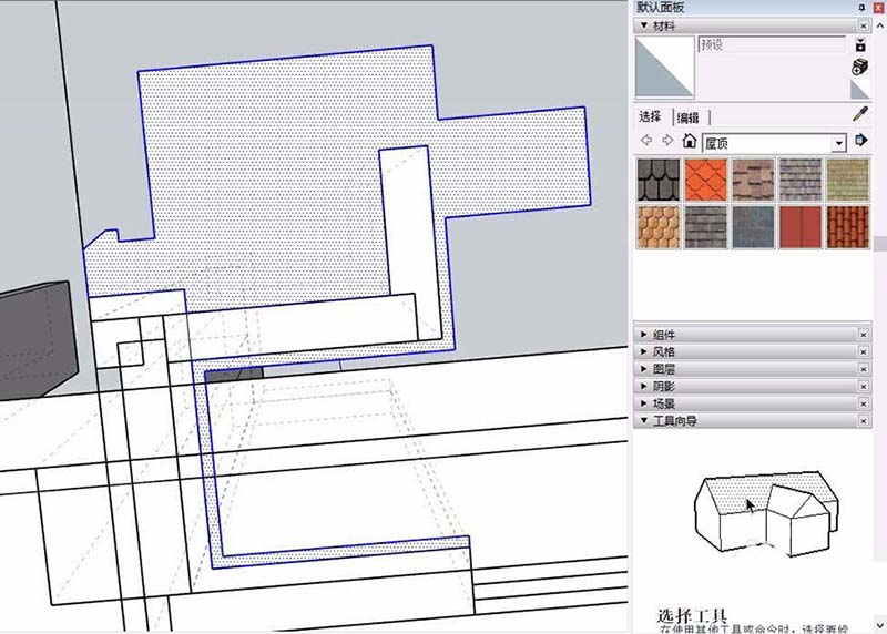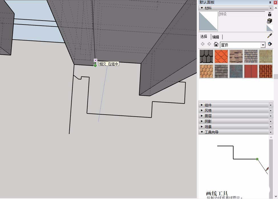 3、如果是比较特殊的外饰面,我们最好使用铅笔工具进行勾勒,su只有闭合线条才会形成面,我们需要注意闭合线条。