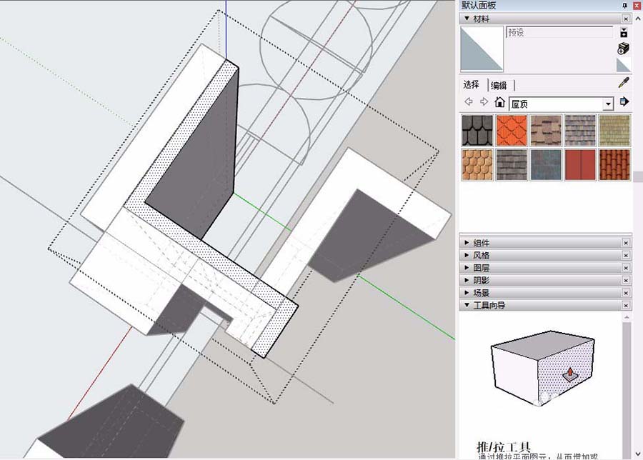 4、完成底部保温的描绘后,我们就可以按下P键,进入到推拉工具,直接对保温层进行模型的推拉,建造出来合适的高度。