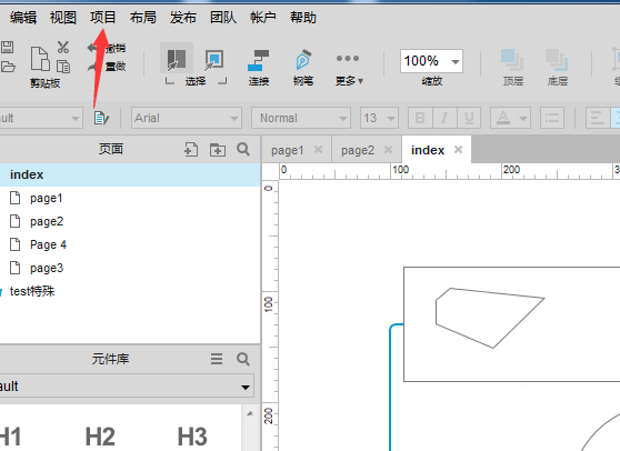 2、点击了的Axure8的菜单中当中的菜单中的项目的菜单。