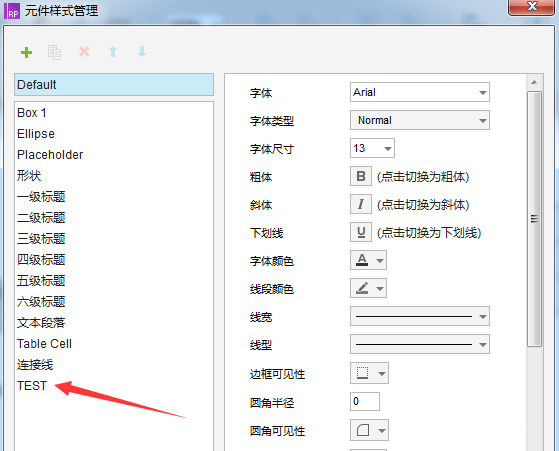 4、点击了元件样式编辑的窗口当中,选中test的样式的选项。