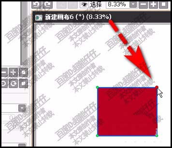 3、此时,画布中的矩形的四个角,显示出锚点。鼠标放在锚点上,此锚点变成红色。