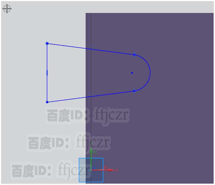 4、选用拉伸命令,草图平面为新建的坐标XY面;在草图中用轮廓线命令,在X轴正向绘出带圆弧的轮廓。