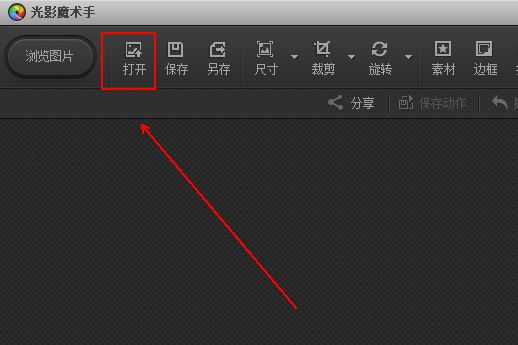 1、在【光影魔术手】的工具栏上点击【打开】选项。