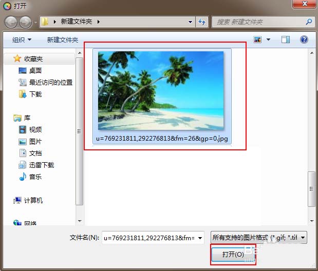 2、在弹出的【打开】窗口中找到需要载入的图片并双击【打开】