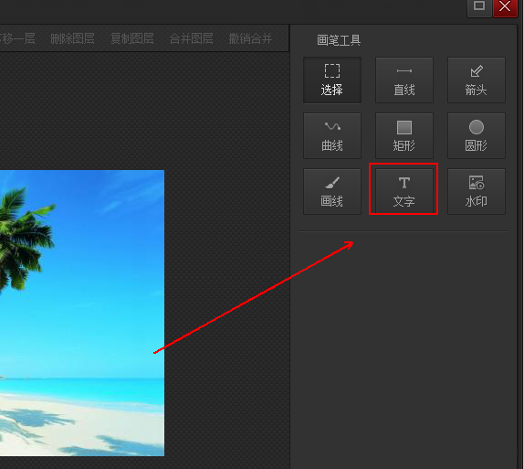 4、在【画笔工具】菜单列中单击【文字】选项。