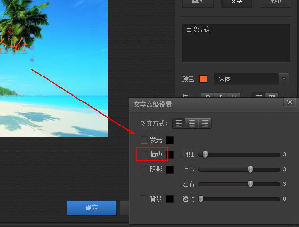 8、在【文字高级设置】窗口中勾选【描边】选项。