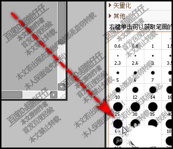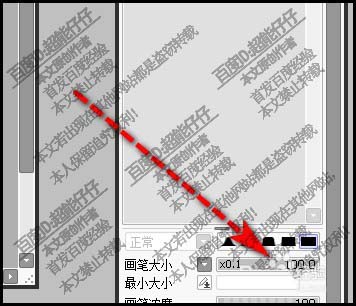 7、若想局部修改线条大小的话,我们要调出笔压工具。鼠标放在曲线的某个点上。再拖拉,即可改变这部分的大小。