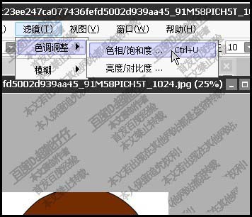 2、接下来我们要调整画的颜色。鼠标点:滤镜,再点:色调调整;再点:色相/饱和度