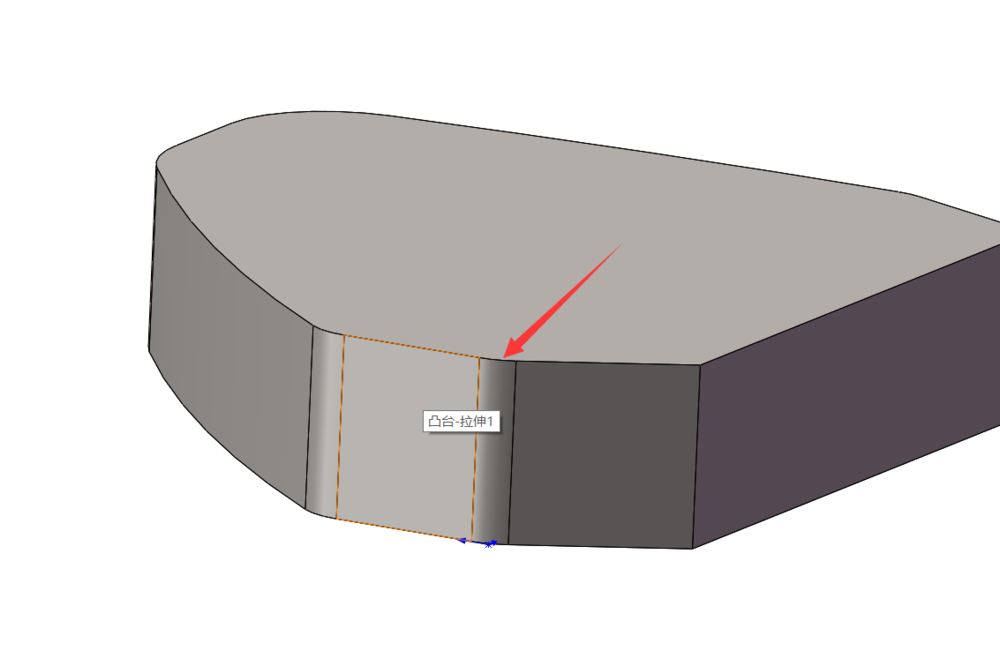 4、如果选择倒角的边线接了圆弧就会接着选中后面的边线。