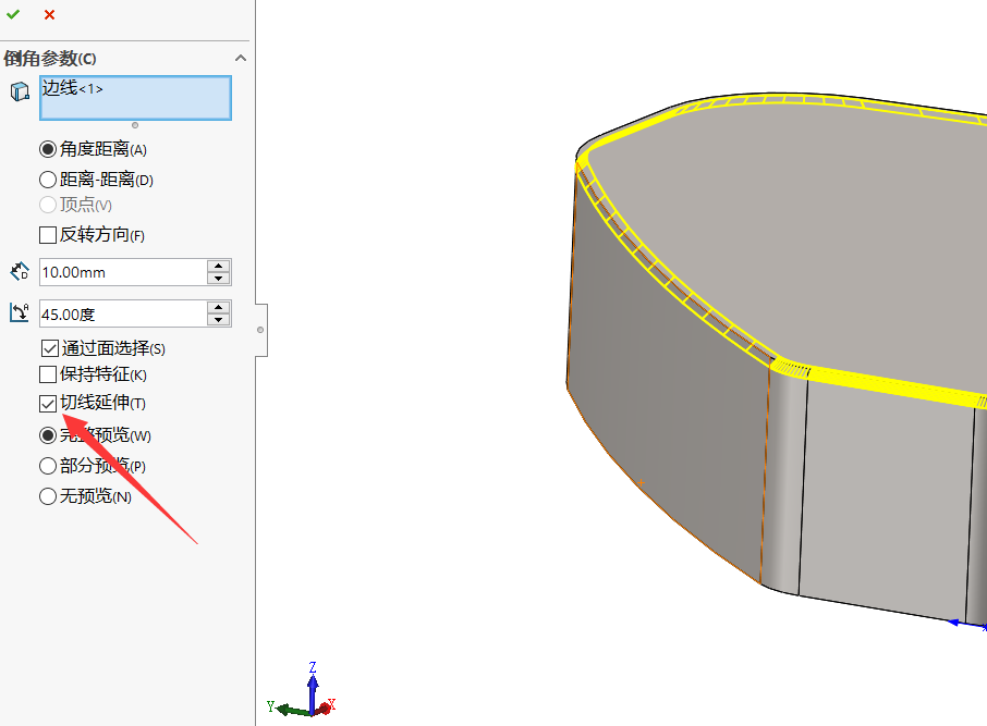 以上就是Solidworks选择需要倒角的一条直线教程,希望大家喜欢,请继续关注脚本之家。