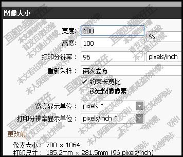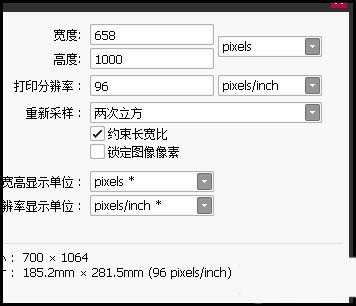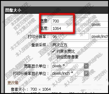 7、这时,我们就看到图片大小为高度1064;宽度为700