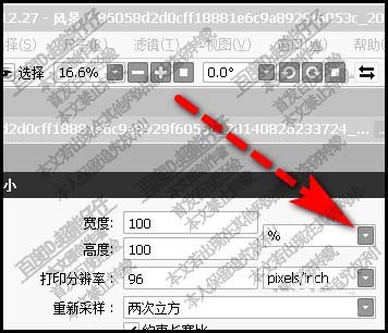 4、调出了图像大小的面板,当前的高度与宽度显示为100;有些朋友可能有些懵;图像大小怎么显示100;