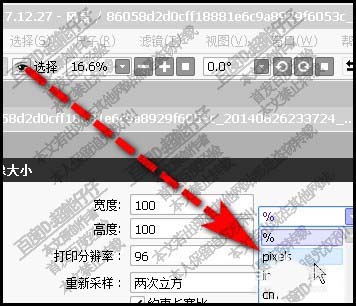 6、弹出的下拉内容中,选择:pixels,也就是PX;翻译成中文就是像素