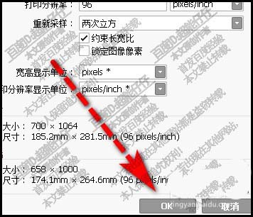 8、那么,我们把高度与宽度尺寸修改小些,再点OK即可。