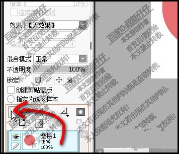 3、比如,我们在图层1画出一个圆形。接下来,要复制此图层。
