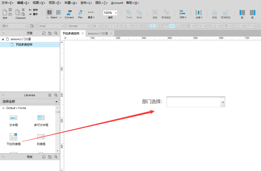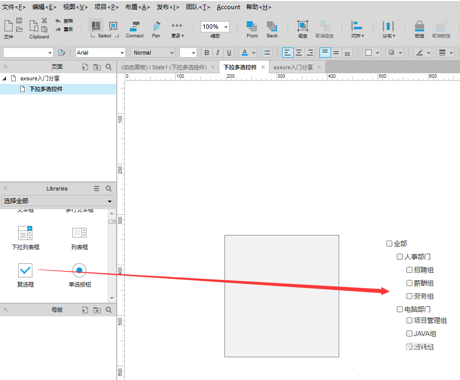 axure中想要制作一个下拉多选部门的控件,可以应用在企业管理或者BPM相关流程等场景,例如选择只给保安部门的人发消防通知,该怎么制作呢?下面我们就来看看详细的教程。