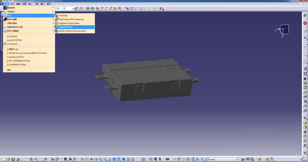 2、点击开始>形状>创成式外形设计,进行创成式设计模块;