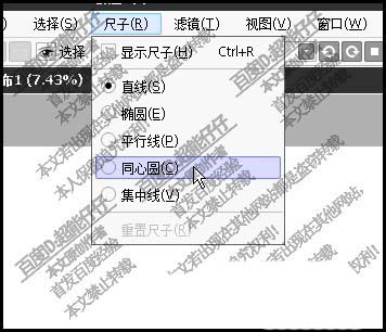 3、点选:同心圆。即时在画布中显示出同心圆的尺子